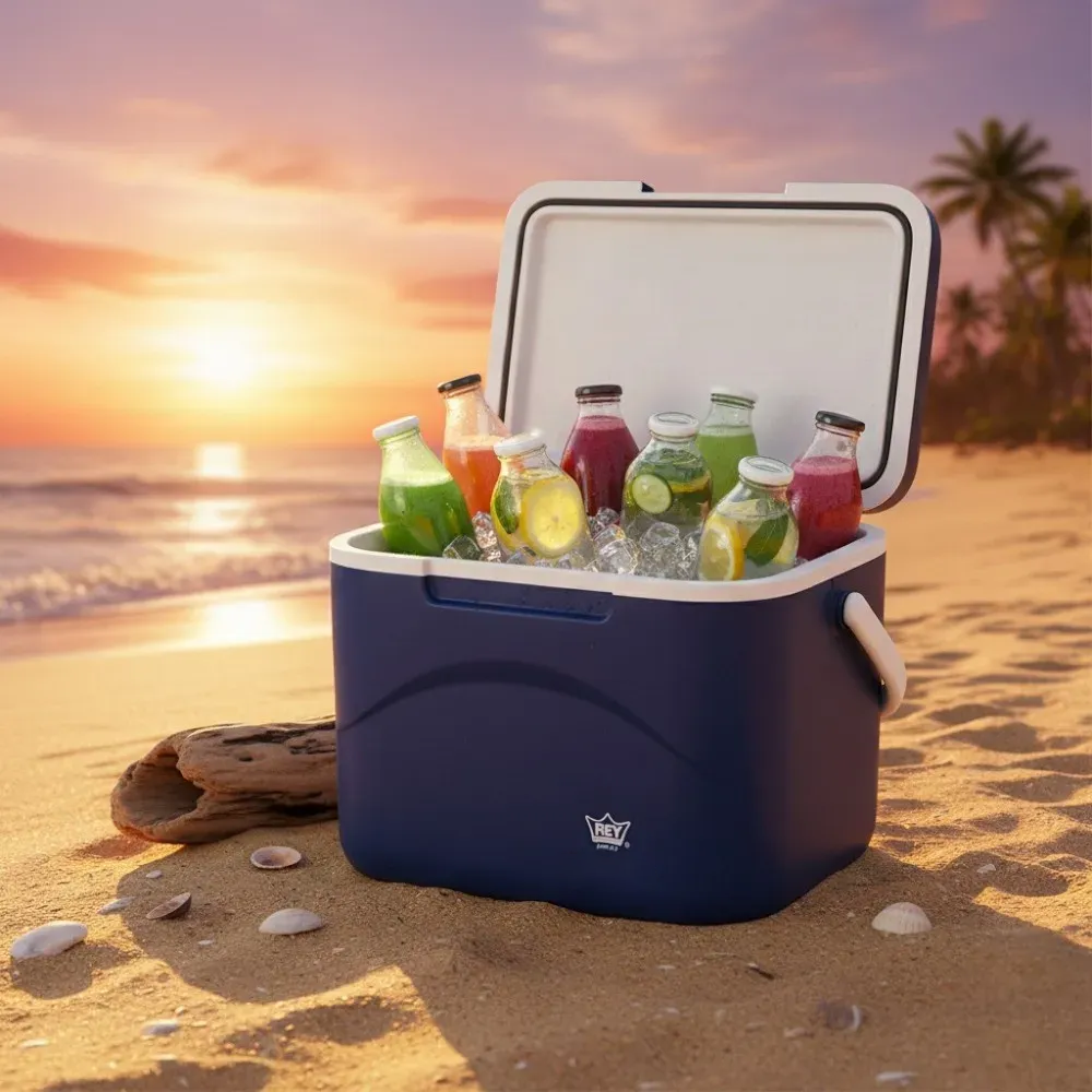 Hielera Eskimobox 17 Litros en color Azul. Práctica y resistente hielera con capacidad de 25 latas de 355ml, libre de BPA ideal para acompañarte en cualquier ocasión. Su diseño está elaborado con materiales duraderos, garantizando mayor vida útil y resistencia al uso diario. Gracias a su aislamiento termico de poliestireno y su filtro solar UV, mantiene tus bebidas frías hasta por 40 horas y calientes hasta por 5 horas, siendo perfecta para viajes, paseos, picnics, días de playa. Compacta y fácil de transportar, la Hielera Eskimobox es el aliado perfecto para mantener la temperatura de tus alimentos y bebidas en todo momento.
