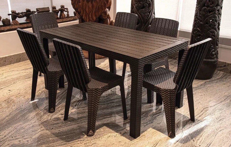 MESA ROBLE CON RATAN 150 X 80 + 6 SILLAS TAVARUA MODELO RATAN REY quantity